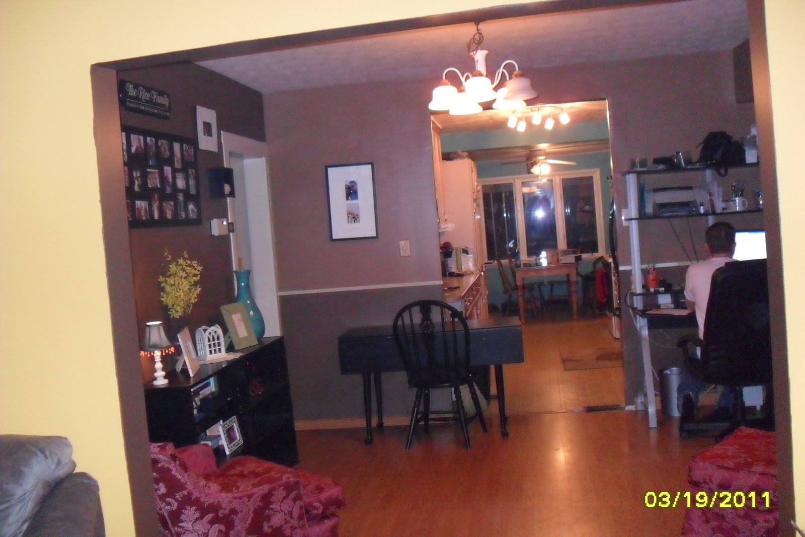 Dining room from living room, kitchen in the background. That black table and chair is not staying, just needs to be brought into the basement.